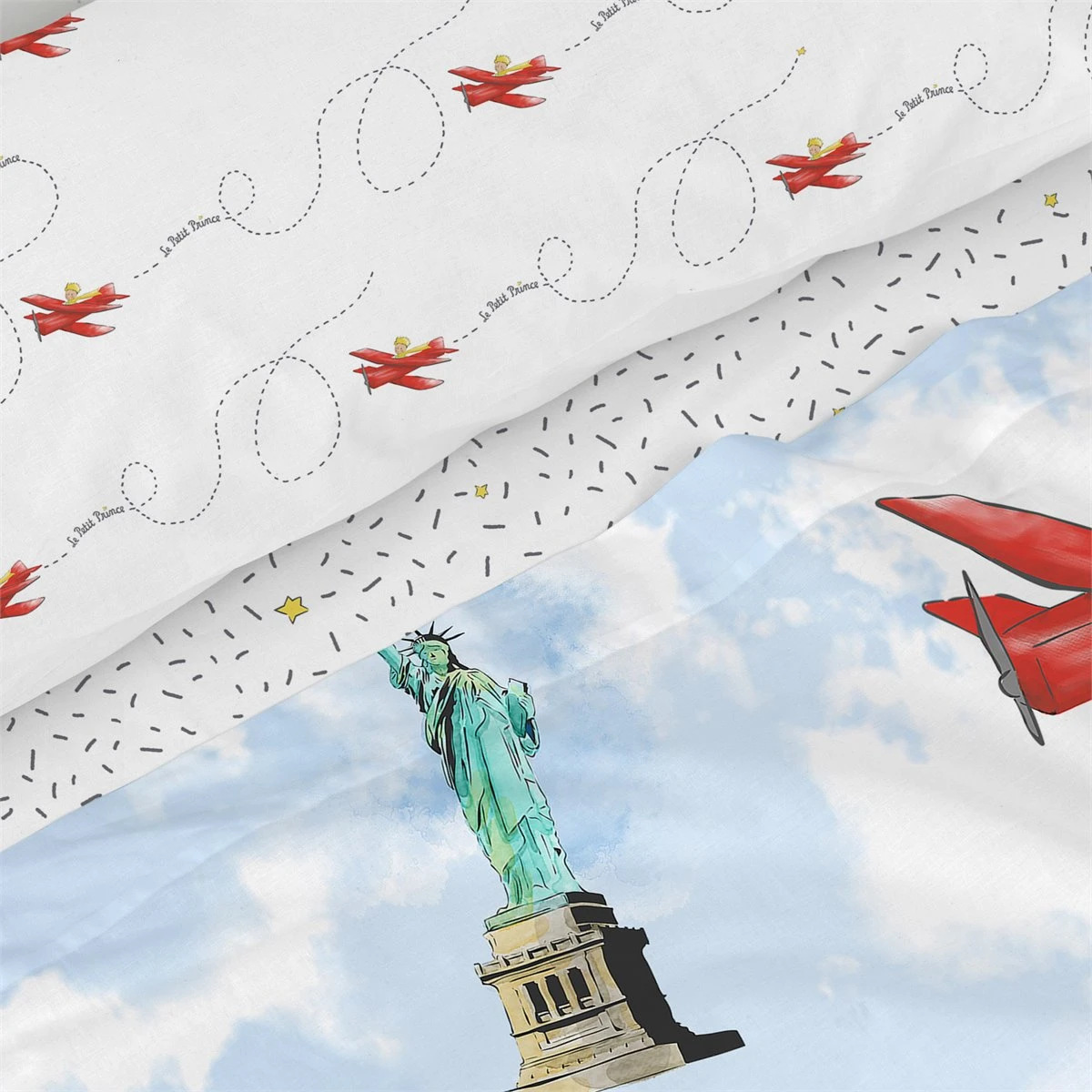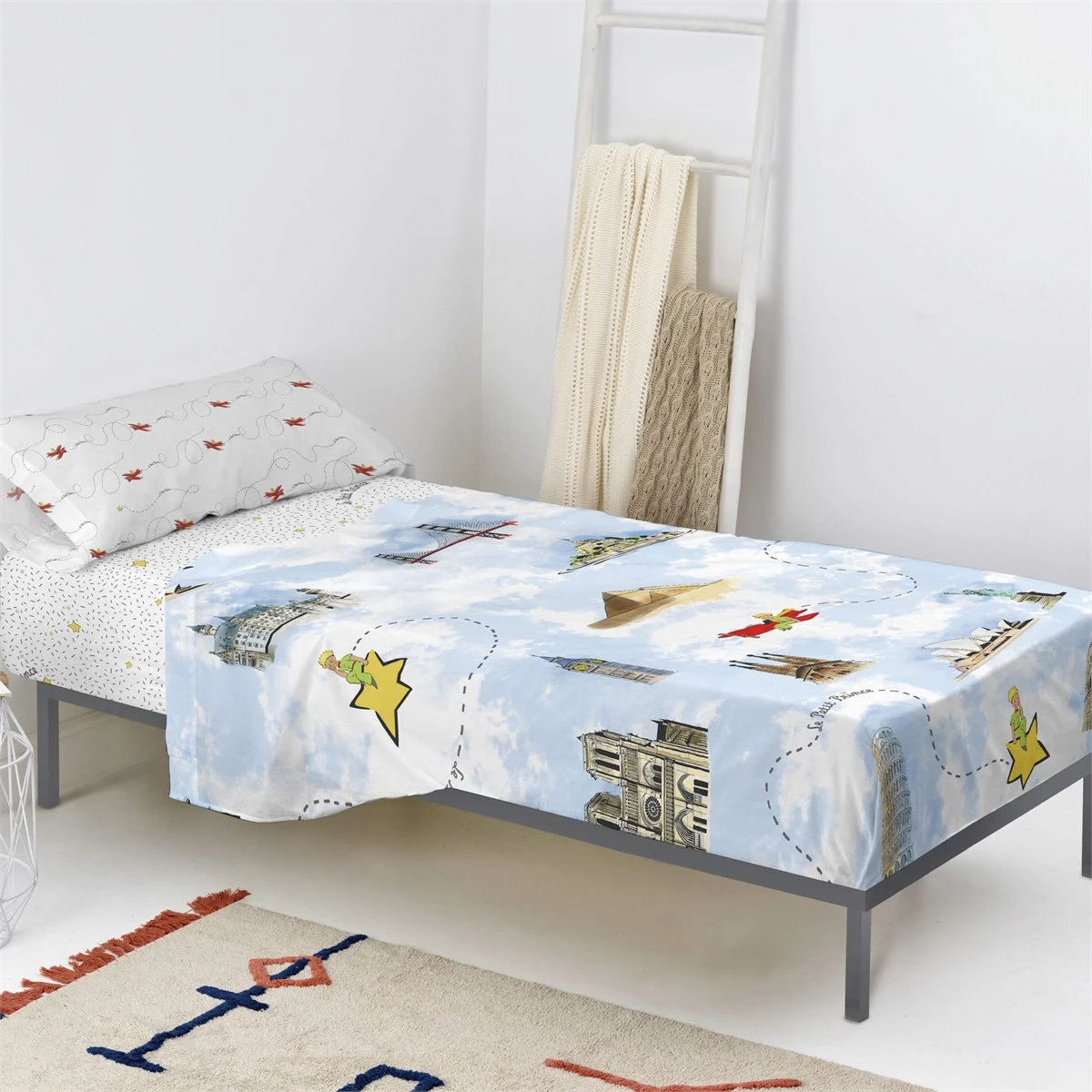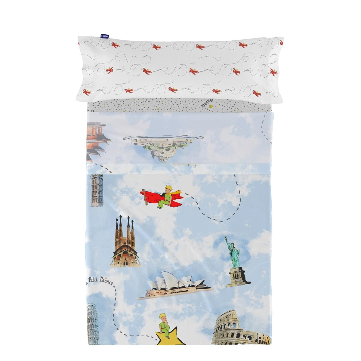 Viajar por el mundo en busca de nuevas aventuras nunca ha sido tan fácil y divertido como con el juego de sábanas Aventureux de la colección Le Petit Prince. ¡Súbete a una estrella o a un avión rojo, peque! ¿A dónde vamos? ¿Tal vez a dar una vuelta rápida alrededor de las pirámides?Los ricos y sólidos colores impresos en algodón 100% permanecerán constantes gracias a laestampación digital de alta definición y pueden combinarse con otros productos de la misma colección. Fabricado en España.Disponible en las siguientes tallas: * 160×270 [Cama 80/90](incluye funda de almohada 45×110. * 180×270 [Cama 105] (incluye funda de almohada 45×125.