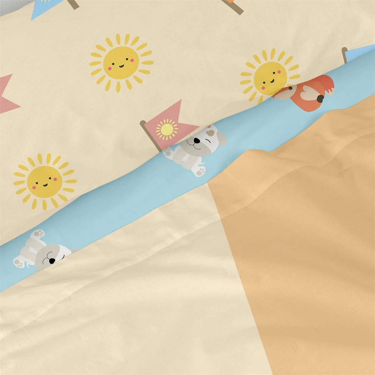 Cubre la cama de tu hijo con la sábana Camping de la colección Happynois y transforma su habitación en un lugar al aire libre lleno de actividades y aventuras coloridas.¡Sí! ¡El exterior acaba de convertirse en el interior! Disfruta de lo mejor de ambos mundos!Con 150 hilos esta sábana de algodón 100% da un toque más ligero y reconfortante a tu pequeño para sumergirse en un profundo y refrescante sueño.Disponible en las siguientes tallas: * 160×270 [ Cama 90 ] (incluye funda de almohada estampada 45×110. * 180×270 [ Cama 105 ] (incluye funda de almohada estampada 45×125.