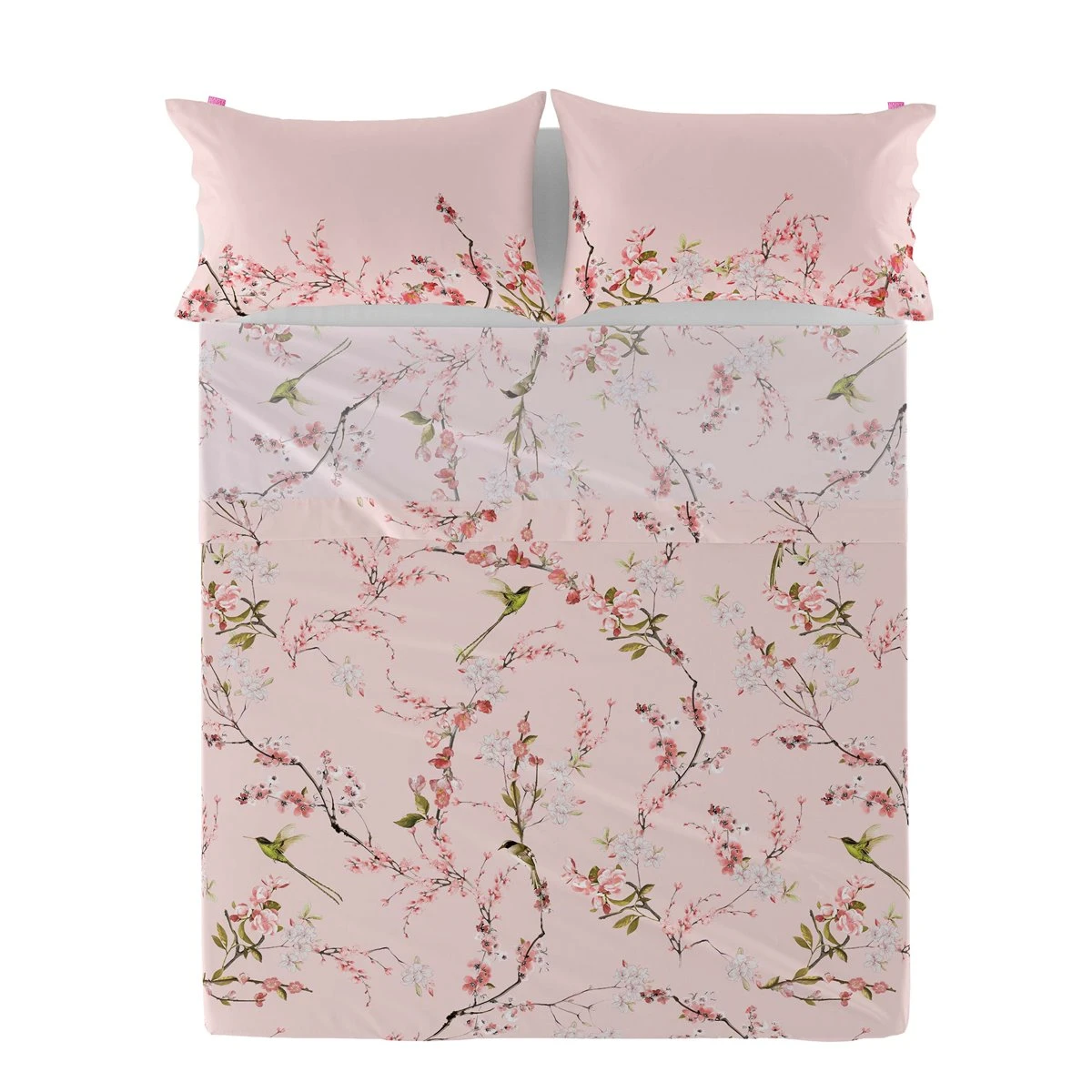 La sábana Chinoiserie Rose de la colección Happyfriday es ideal para crear un ambiente romántico y delicado a tu habitación con sus encantadoras flores de cerezo en flor sobre fondo en rosa.Experimenta una comodidad y suavidad excepcionales bajo esta ligera sábana de algodón 100% de 150 hilos y un acabado suave. Ideal para las cálidas noches de verano.Funda de almohada y bajera no incluidas.Disponible en las siguientes tallas: * 160×270 [Cama 80/90] * 180×270 [Cama 105] * 210×270 [Cama 135/140] * 240×270 [Cama 150/160] * 260×270 [Cama 180/200]