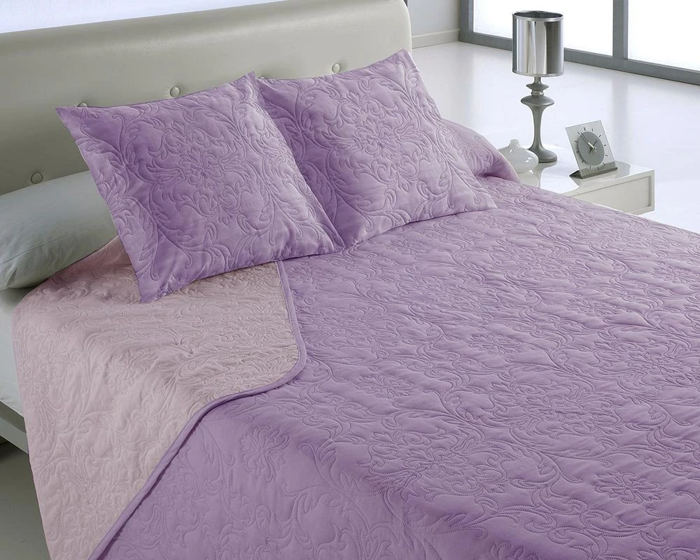 No solo te ayudará a combatir el frío. Con la colcha bicolor VEGAS MALVA, aparte de estar calentito durante las noches, también podrás imprimir personalidad y diseño a tu dormitorio. La colcha VEGAS MALVA tiene un corte clásico pero su bordado de formas sugerentes y geométricas aportará el contrapunto de modernidad al conjunto.Además, con la colcha VEGAS MALVA puedes dar un toque diferente a tu habitación. Gracias a su diseño bicolor podrás disponer de dos tonalidades para que las alternes como más te apetezca y consigas cambiar la decoración de tu cuarto con muy poco esfuerzo.