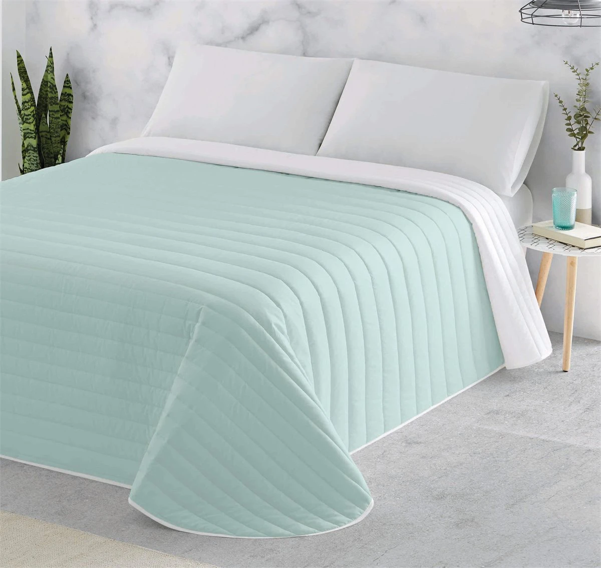 Colcha multipunto que contiene un ligero relleno de 120 gramos, es un producto ideal para primavera – verano o para los hogares con calefacción, finamente acolchada a líneas es muy decorativa y de gran confort.