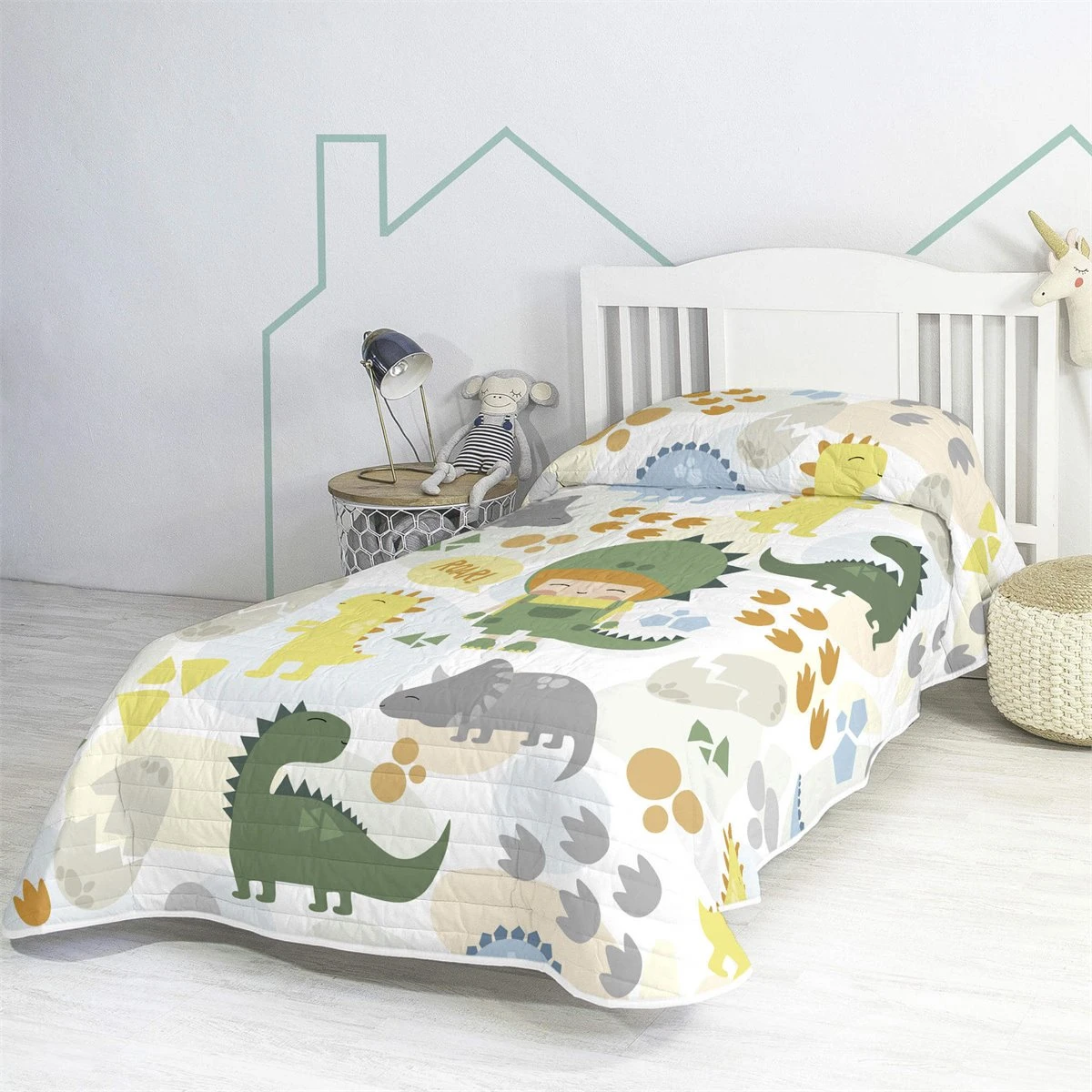 Presenta a tu pequeño a todas las divertidas y coloridas criaturas del pasado con la Colcha Happydino de la Colección Happynois. Pero espera, parece que hay un dinosaurio que no encaja. ¿Puedes ver cuál? ¡Puedes decirlo por su rugido!Su hijo experimentará un confort y una suavidad excepcionales bajo esta colcha de algodón 100% con un número de 150 hilos y un acabado suave. Ideal para esta temporada.Disponible en las siguientes tallas: * 180×260 [ Cama 80/90 ]> * 200×260 [ Cama 105 ]