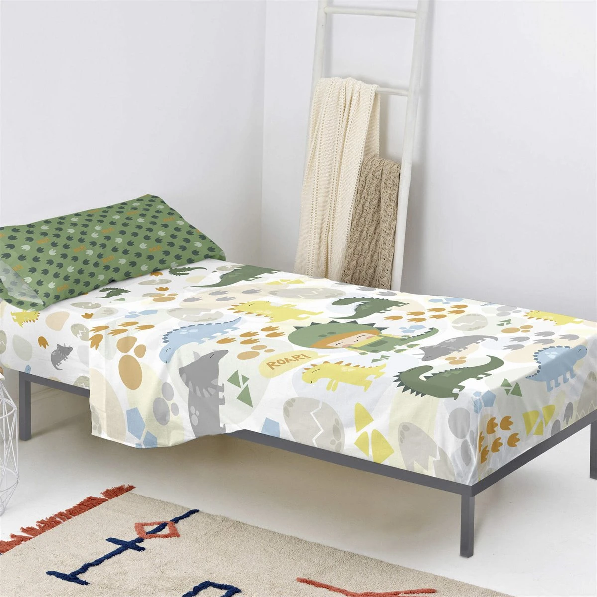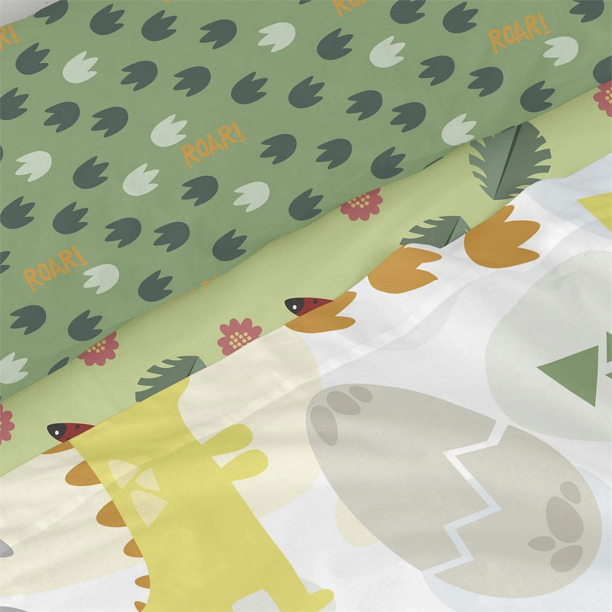 Deja libre la imaginación de tu hijo cuando se tape con la sábana Happydino de la colección Happynois. Tendrás que esperar hasta la mañana para saber sobre sus increíbles aventuras con sus grandes compañeros prehistóricos, y cómo siguieron las huellas en busca de los huevos recién nacidos. ¡Emocionante!Hecha en España con 100% algodón de 150 hilos y estampada digitalmente en alta definición, esta sábana se puede combinar con otros productos de la misma colección para ayudarte a completar la deco con el tema de la prehistoria.Disponible en las siguientes tallas: * 160×270 [ Cama 90 ] (incluye funda de almohada estampada 45×110. * 180×270 [ Cama 105 ] (incluye funda de almohada estampada 45×125.
