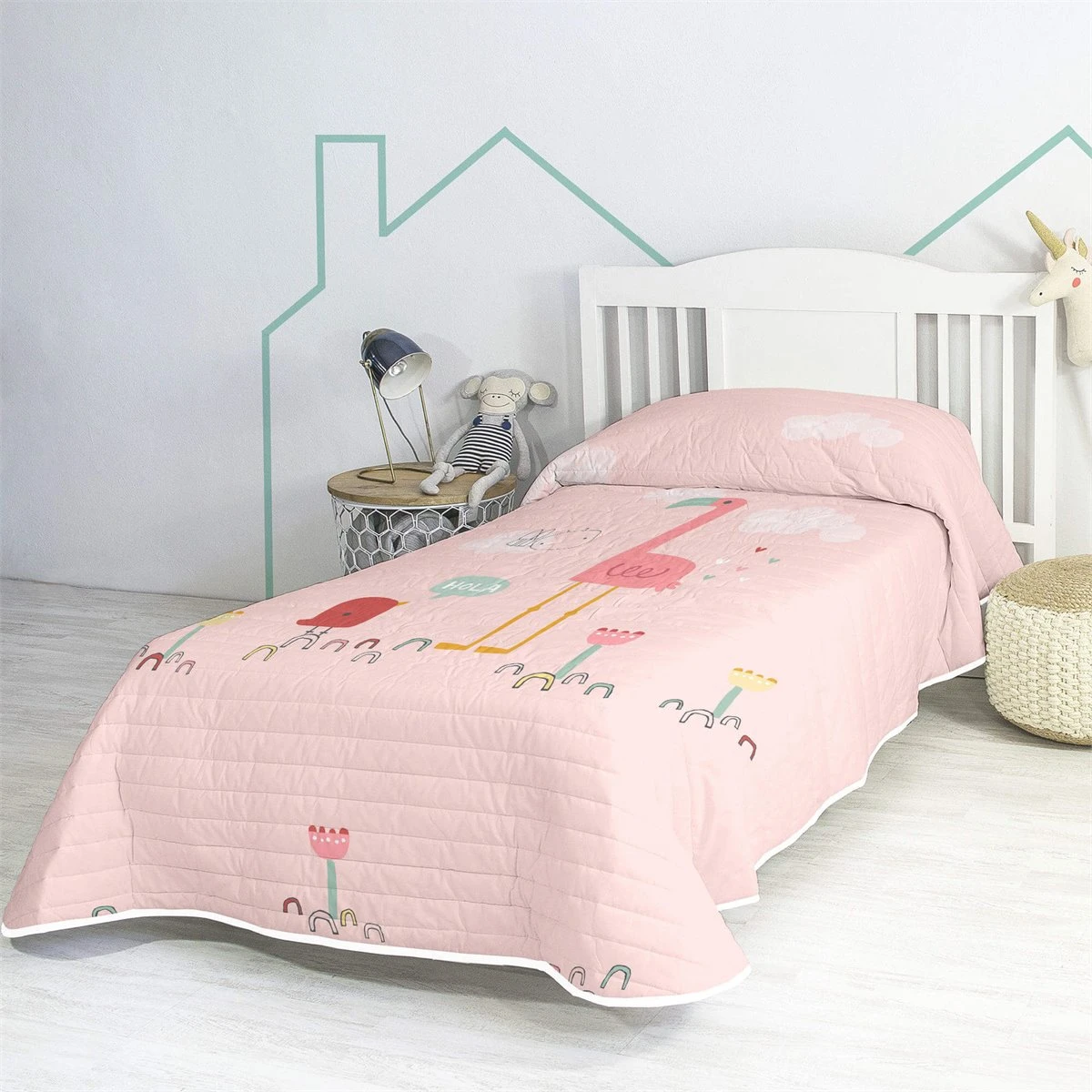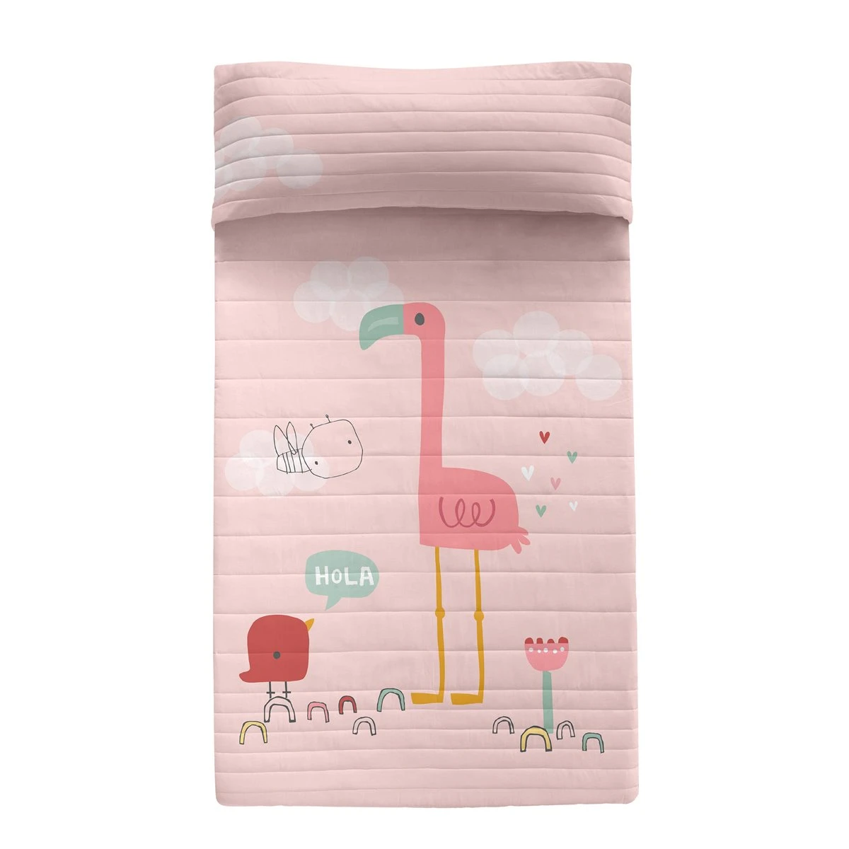 ¿Quién es ese pájaro de cuello largo con patas en forma de palo y plumas rosadas? Presenta a tu hijo el maravilloso y simpático mundo rosado de los flamencos y sus amigos de la laguna con la colcha Hola de Moshi Moshi.Los colores intensos y sólidos impresos en algodón 100% permanecerán constantes gracias a la impresión digital de alta definición. Ideal para cambios de estación.Acolchado en forma de rayas.El relleno es 100% poliéster de fibra hueca siliconada de 100 Gr.Disponible en las siguientes tallas:• 180×260 [ Cama 80/90 ]• 200×260 [ Cama 105 ]