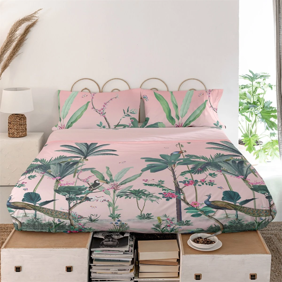 Las elegantes y detalladas ilustraciones tropicales y el relajante fondo rosa de la puesta de sol que se encuentran en la sábana Indonesia de la colección Happyfriday te harán soñar con aventuras románticas en tierras lejanas antes de que tu cabeza haya tocado la almohada.Con un total de 150 hilos, esta sábana de algodón 100% ofrece un toque más ligero y reconfortante, ayudando a enfrascarte en un profundo y refrescante sueño.Funda de almohada y bajera no incluidas.Disponible en las siguientes tallas: * 160×270 [ Cama 80/90 ] * 180×270 [ Cama 105 ] * 210×270 [ Cama 135 ] * 240×270 [ Cama 150 ] * 260×270 [ Cama 180 ]