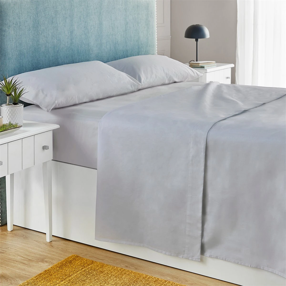 Este elegante juego de sábana encimera, bajera ajustable y funda de almohada en gris con ribete están confeccionadas en percal 100% algodón de 200 hilos de alta calidad. Nuestra línea Natural está confeccionada con tejidos naturales en 100% algodón de primera calidad, obtenidos de manera sostenible y con tratamientos que mejoran sus características originales, haciéndolos aún más suaves y resistentes. Sábana bajera: 90 x 200 + 30 cm; sábana encimera: 170 x 270 + 7 cm; funda de almohada: 45 x 90 + 5 + 5 cm