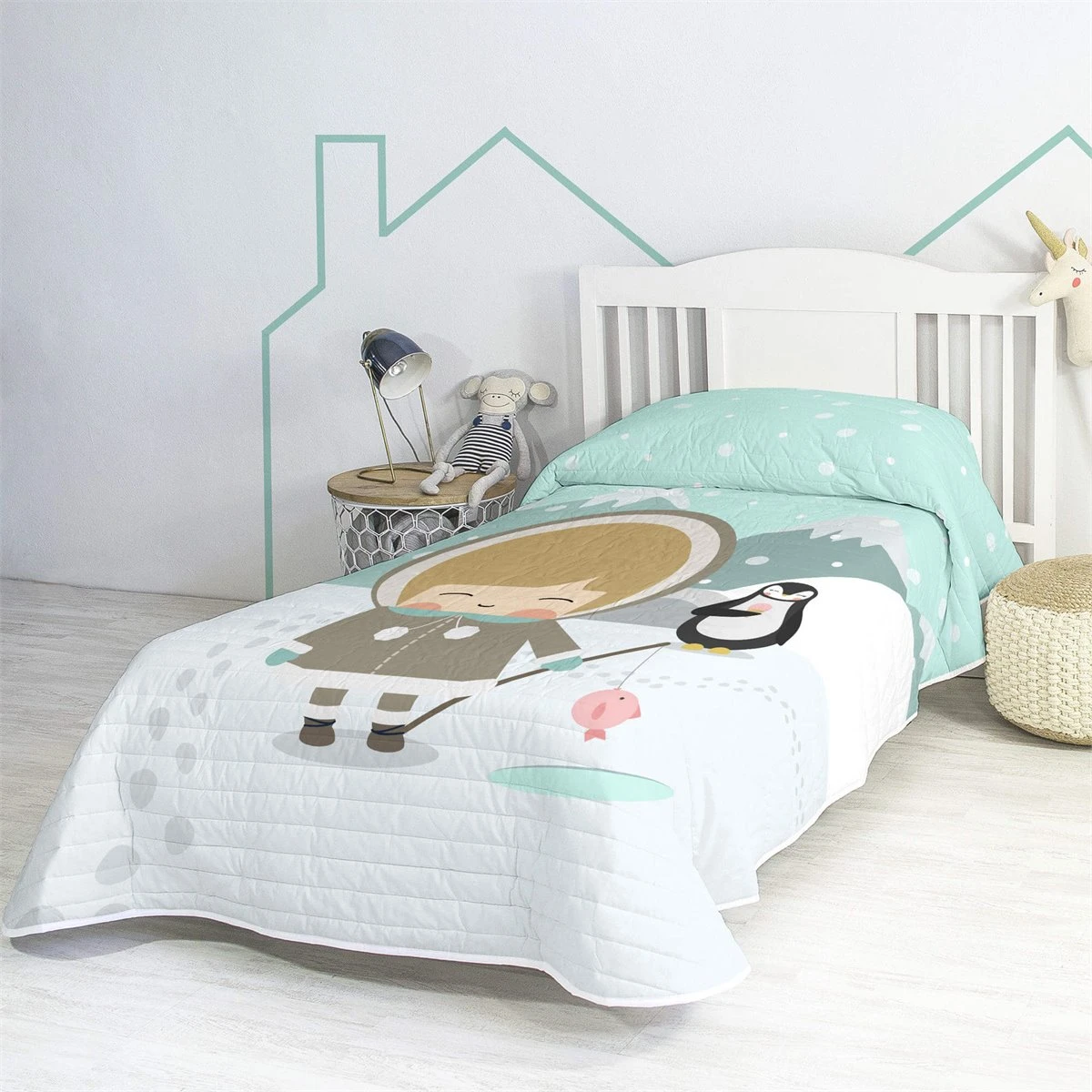Trae los refrescantes tonos helados del Polo Norte a la habitación de tu hijo con la colcha Skymo Day de la colección Happynois. Cúbrete bien, peque, ¡vamos a pescar y hace frío afuera!La combinación de colores neutros y pastel de esta colcha es posible gracias a un proceso de impresión digital de alta definición, mientras que el algodón 100% de 150 hilos ofrece un toque suave y reconfortante.Disponible en las siguientes tallas:• 180×260 [ Cama 80/90 ]• 200×260 [ Cama 105 ]