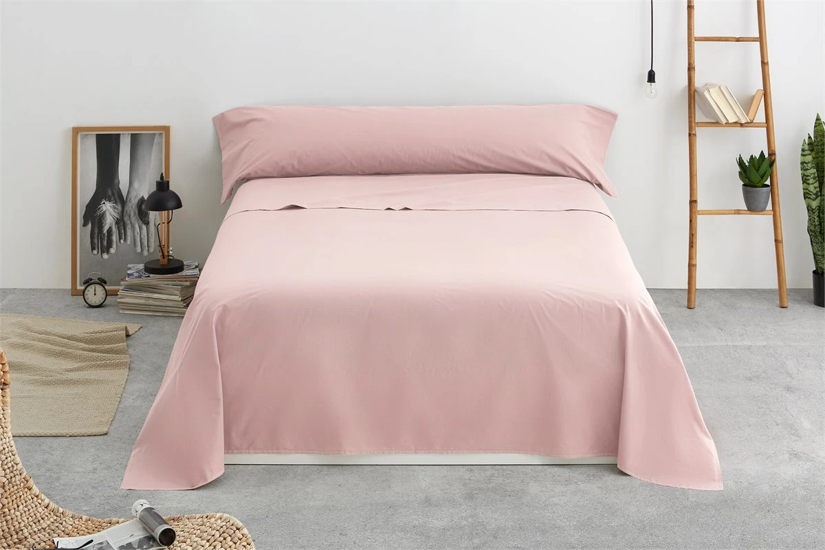 Vipalia – Juego De Sábanas Lisas 3 Piezas 50% Algodón – 50% Poliester. Modelo Rainbow Cama 135 Cm, Color Rosa